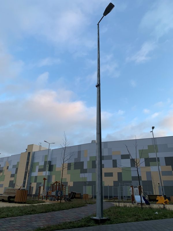 Опорные конструкции высотой 6 м имеют коническую форму и состоят из двух частей, соединенных силовым замком. Грани придают дополнительную жесткость, а для обслуживания предусмотрен лючок.