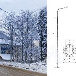 Опора — это полый стальной ствол многогранного сечения, конической формы. Такая форма снижает парусность и соответственно уменьшает ветровую нагрузку на опору.